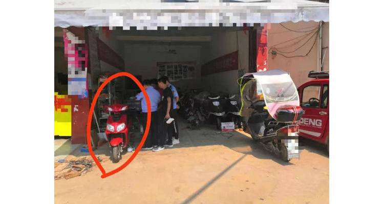 中午11點(diǎn)左右,我們到達(dá)錦江一個(gè)加油站附近,檢測(cè)到有車輛信號(hào)被盜車輛就在附近。于是我們展開(kāi)搜查工作,最終信號(hào)停在一家電動(dòng)車修理店附近。