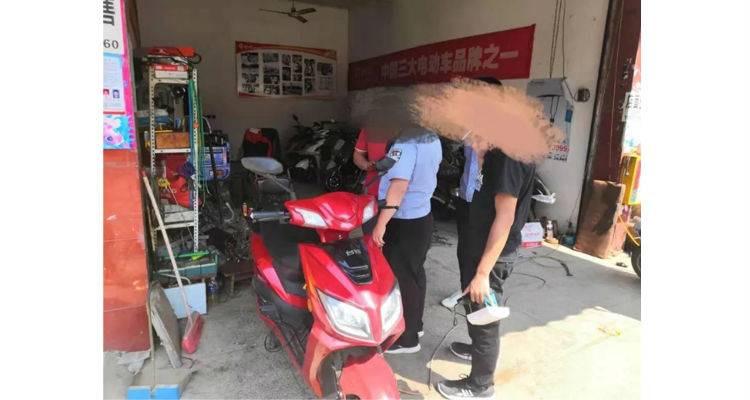 瞭望店內(nèi)四周卻沒(méi)發(fā)現(xiàn)蔡女士那輛紫色電動(dòng)車,有可能藏在里面。就在民警準(zhǔn)備進(jìn)店搜查時(shí),我們查看后臺(tái)電動(dòng)車數(shù)據(jù)發(fā)現(xiàn)停在門口那輛紅色電動(dòng)車似曾相識(shí)。
